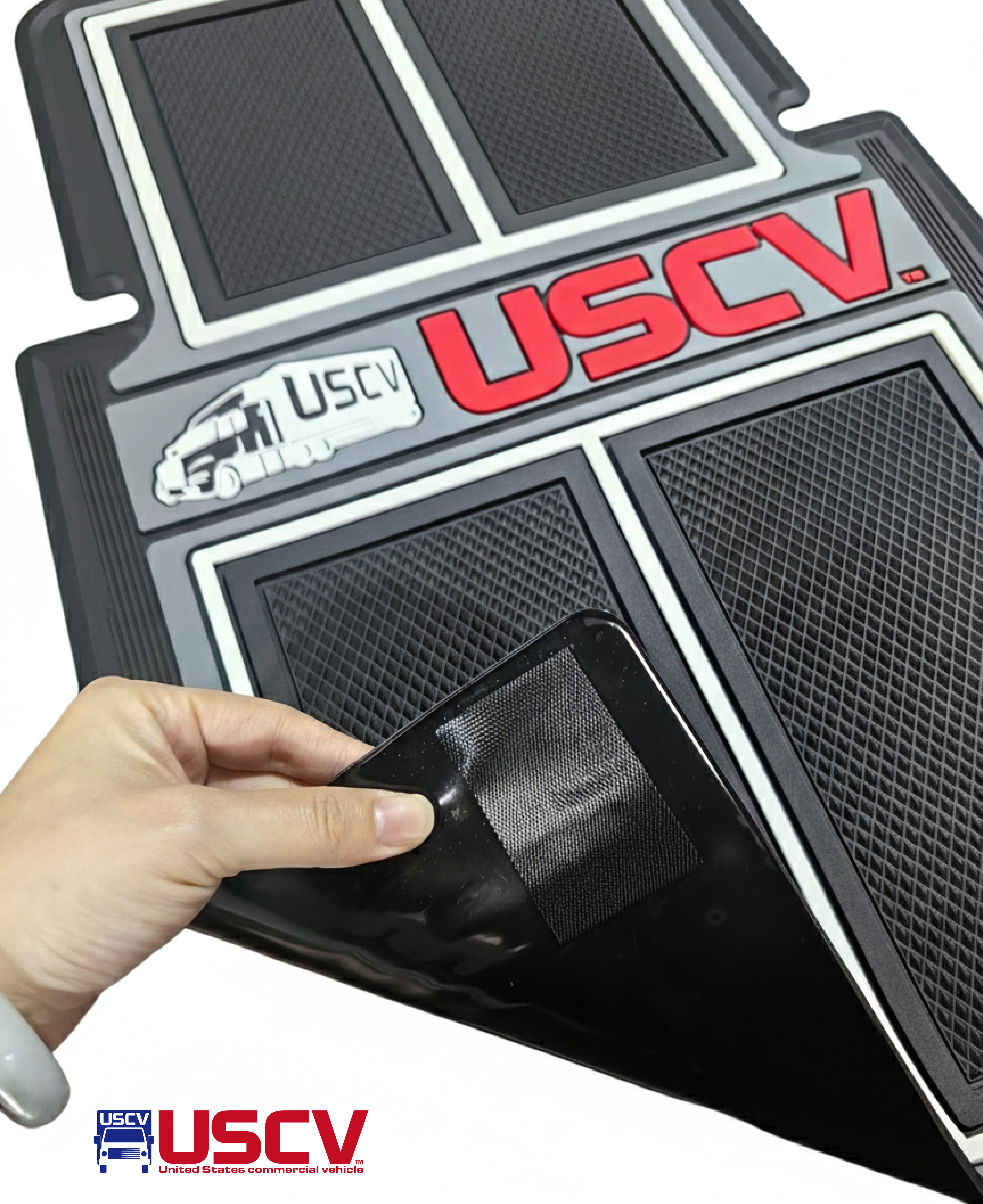 また、ユニバーサルフィットデザインは、多くの車種に対応可能で、取り扱いも簡単。清掃も手間いらずで、いつでも清潔な状態を維持できます。USCVのスタイリッシュなロゴが施されたデザインは、車内にアクセントを加え、個性を引き立てます。