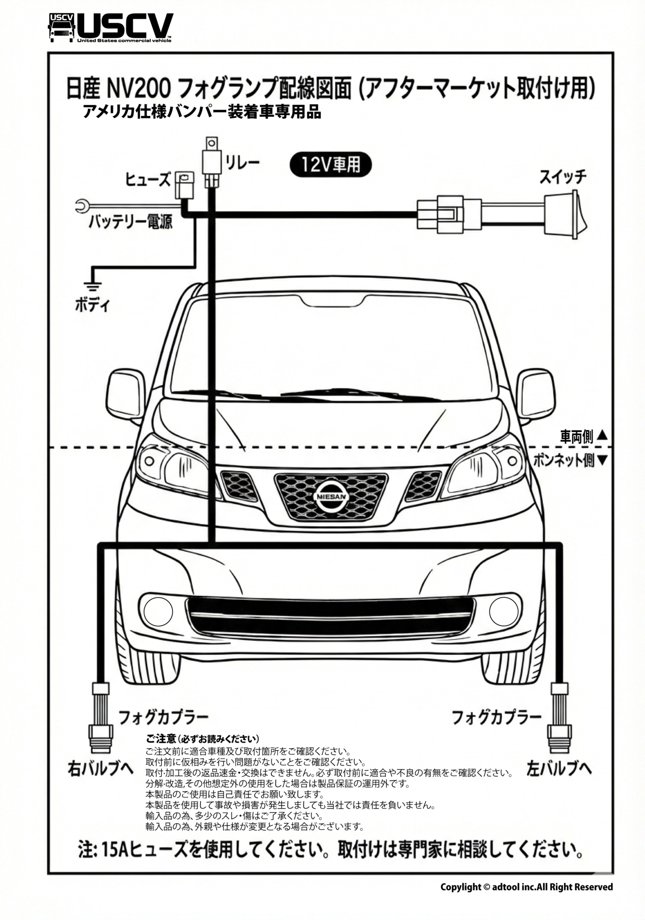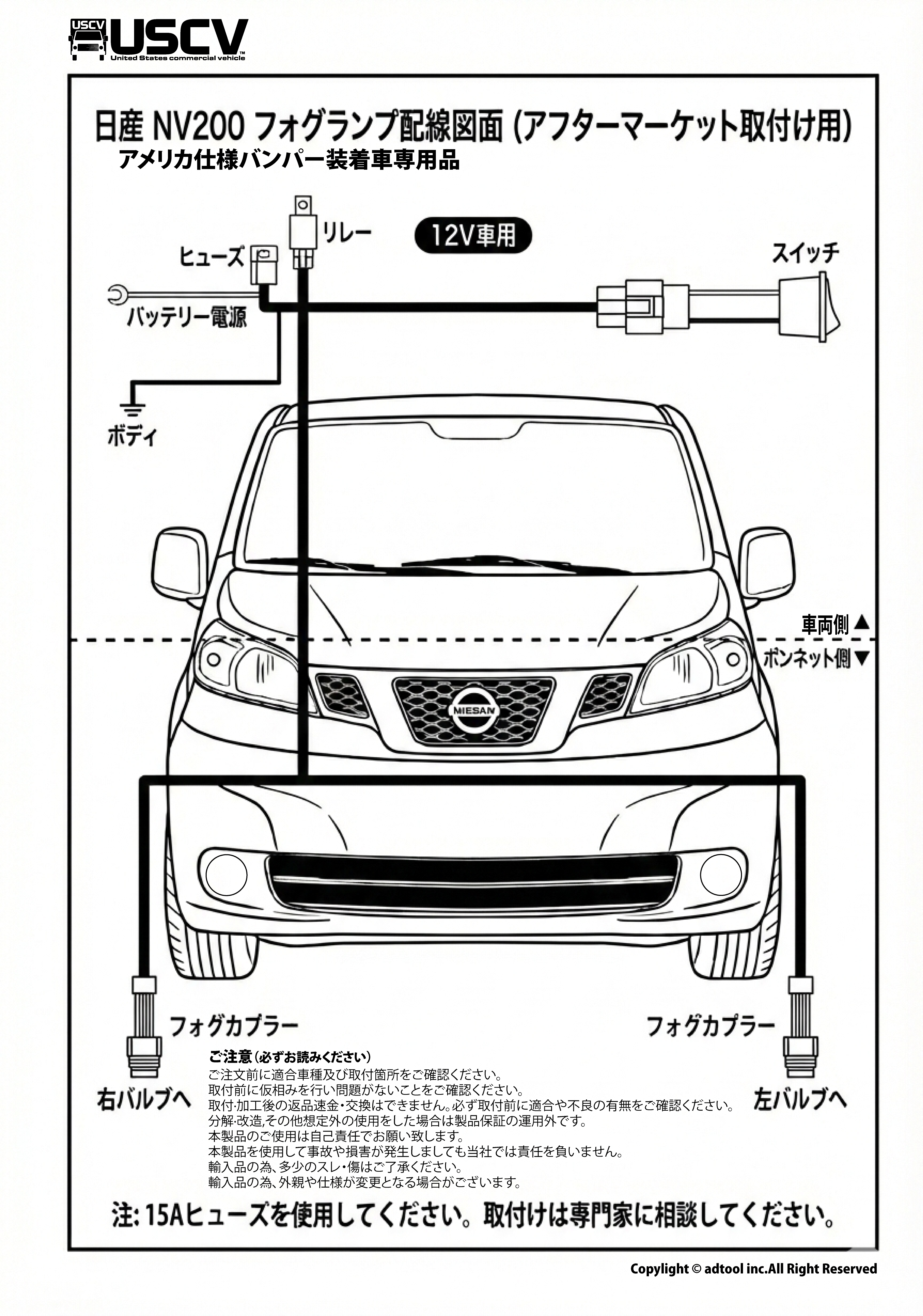 NV200USバンパー専用FOGランプKIT (国内仕様には取付できません。)